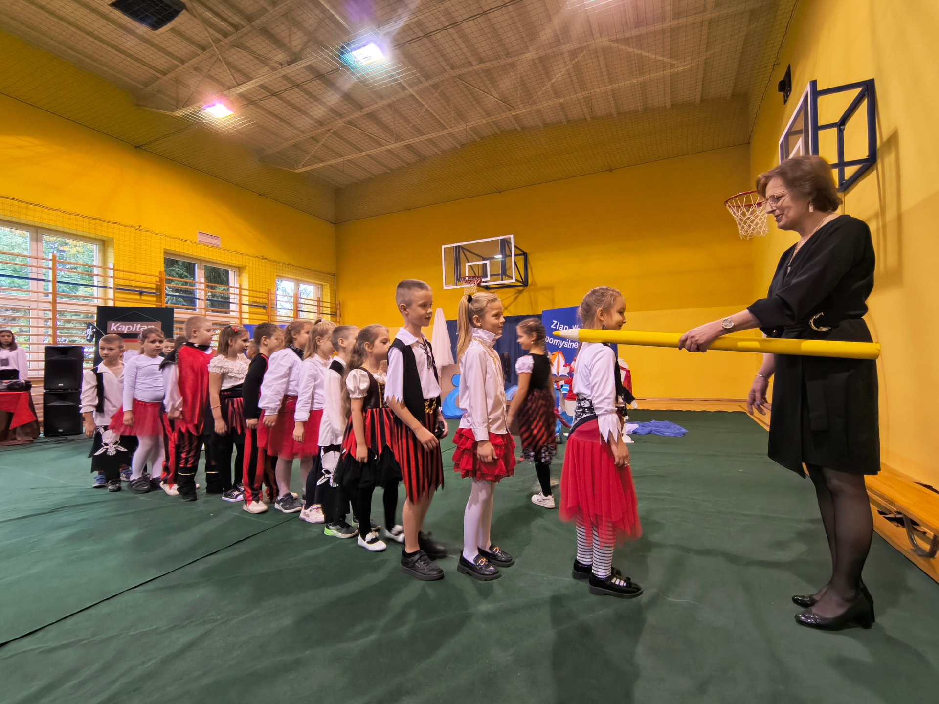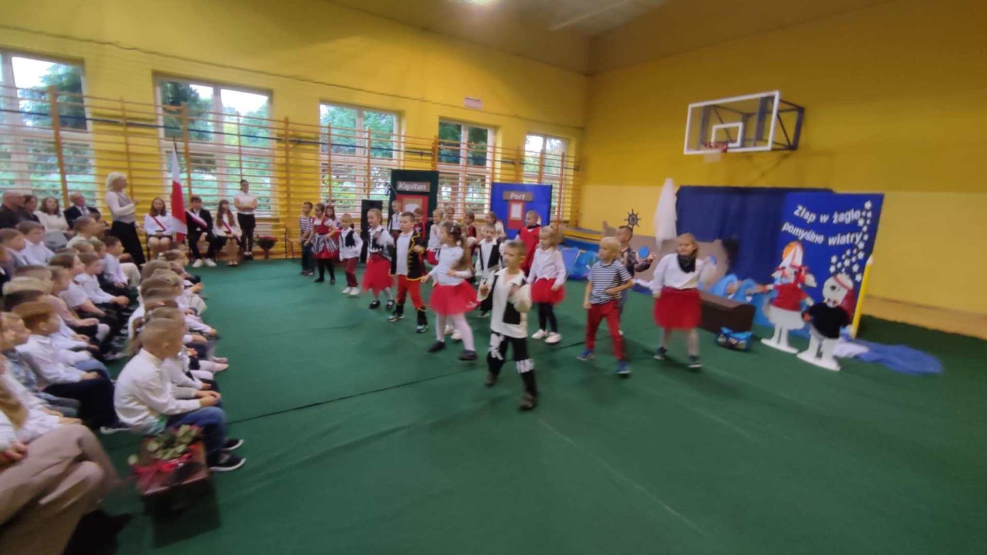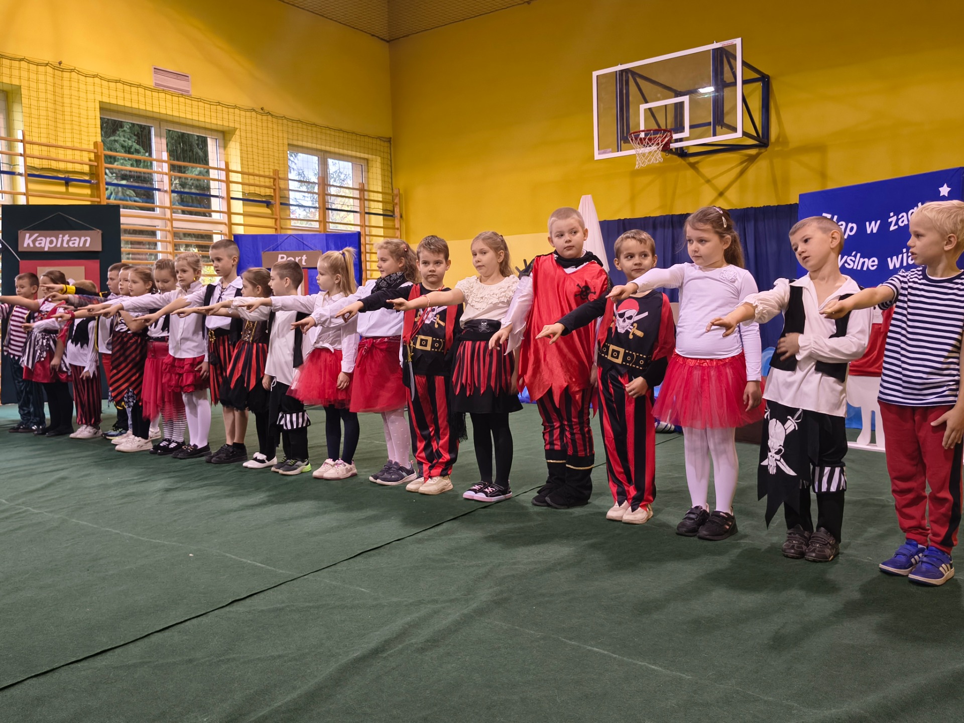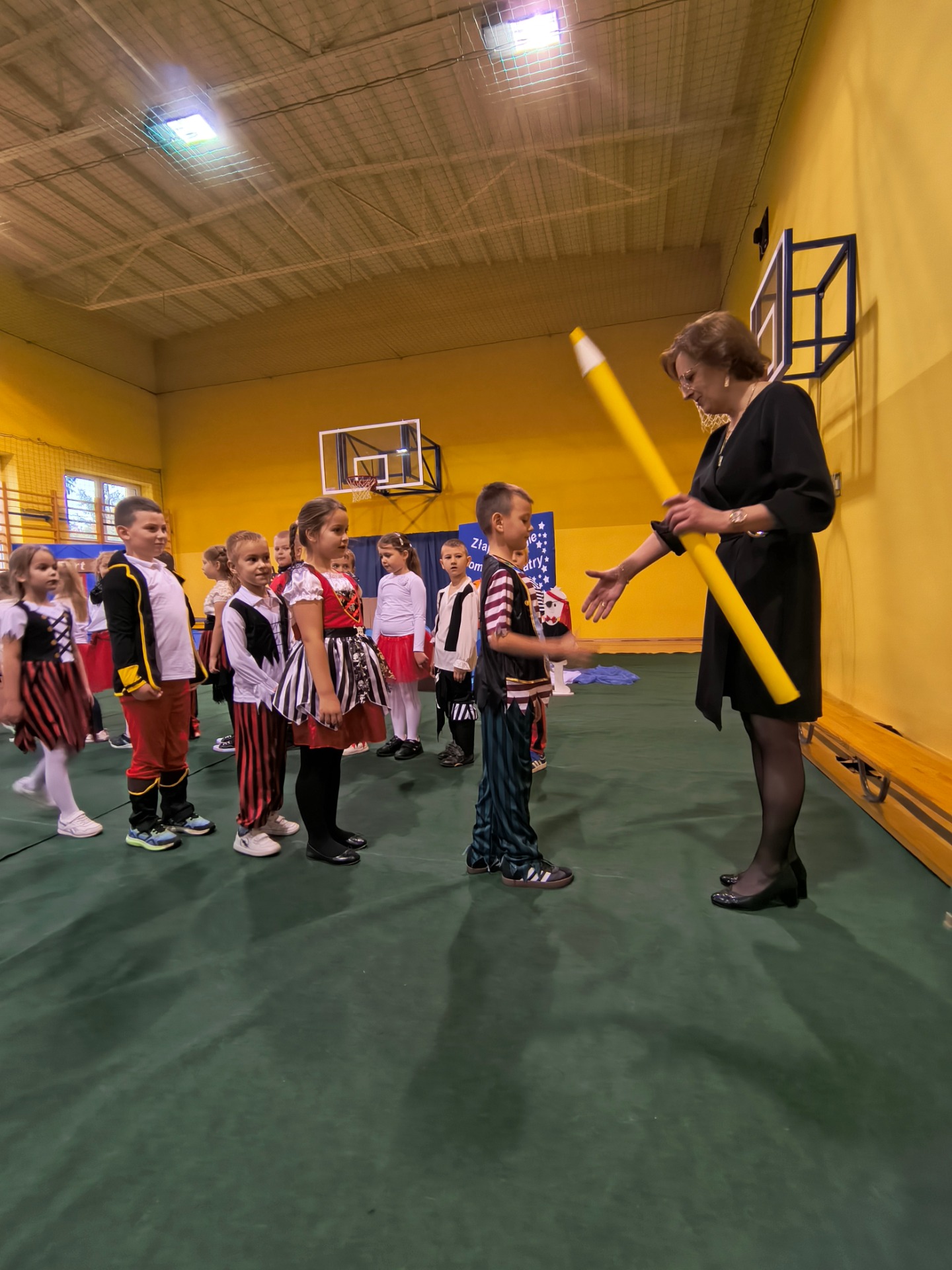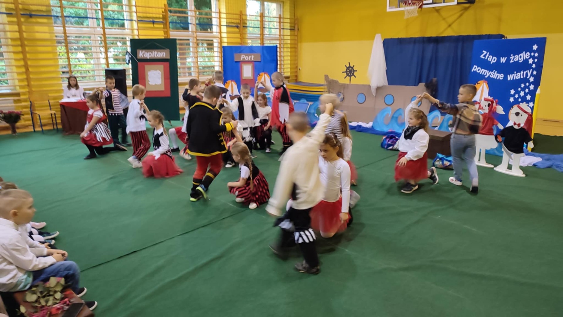 Po tej części nadszedł długo wyczekiwany moment – pasowanie na ucznia klasy pierwszej. Tegoroczna ceremonia miała wyjątkowy, bajkowo-przygodowy charakter. Pierwszoklasiści przedstawili „Piracką opowieść”, w której jako dzielna załoga wyruszyli w symboliczny ośmioletni rejs po morzach nauki. Nad ich podróżą czuwała kapitan – pani wychowawczyni Beata Klause, zapraszając dzieci do wspólnej, pełnej przygód szkolnej wyprawy.