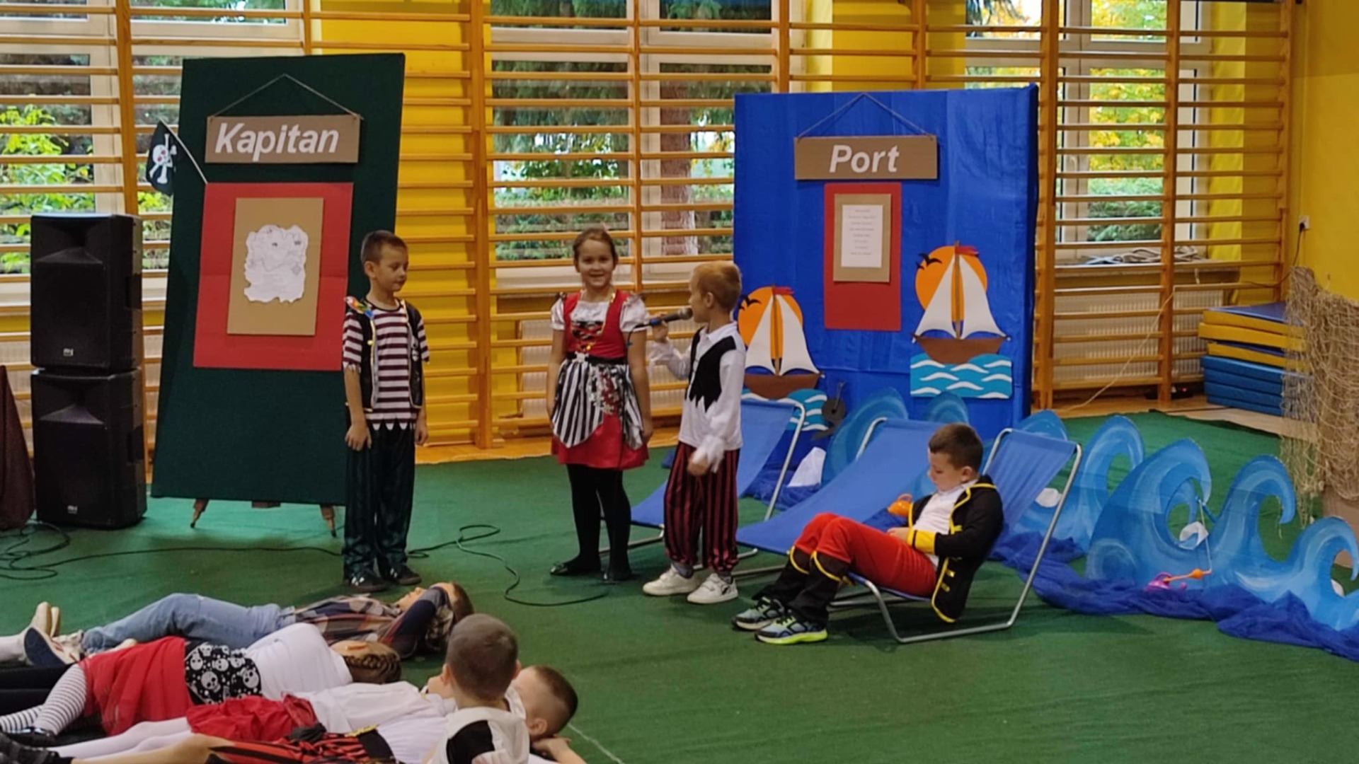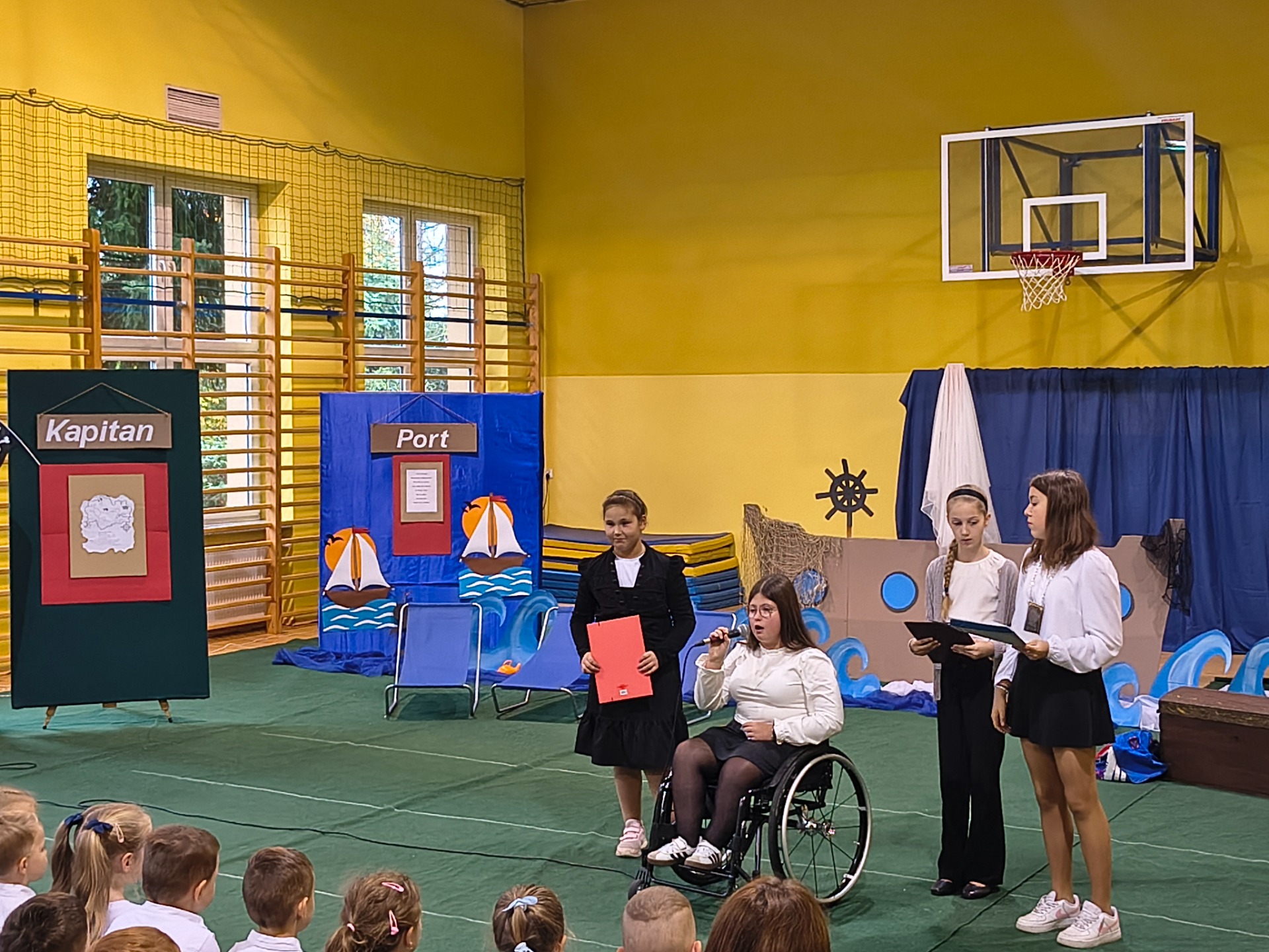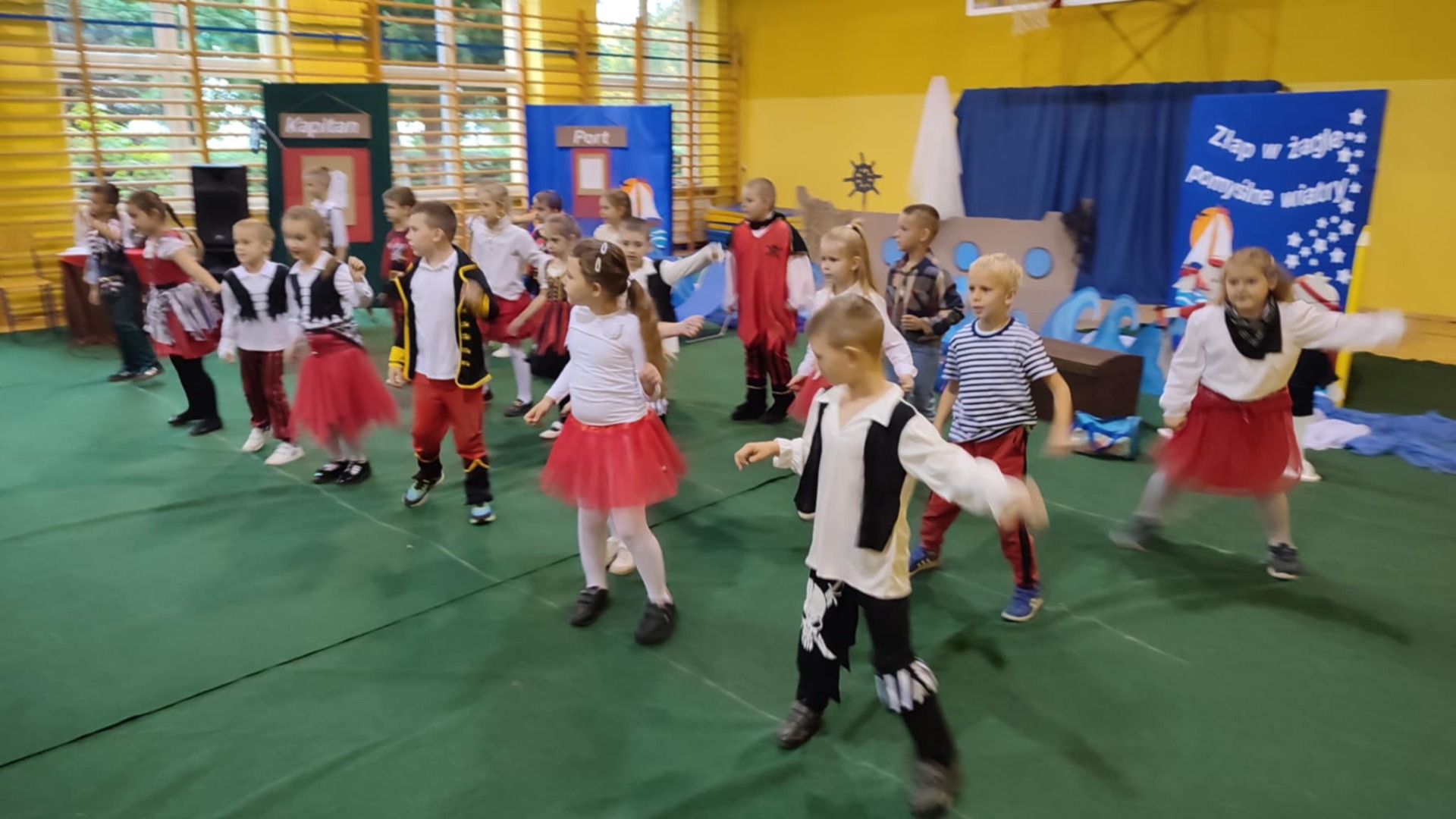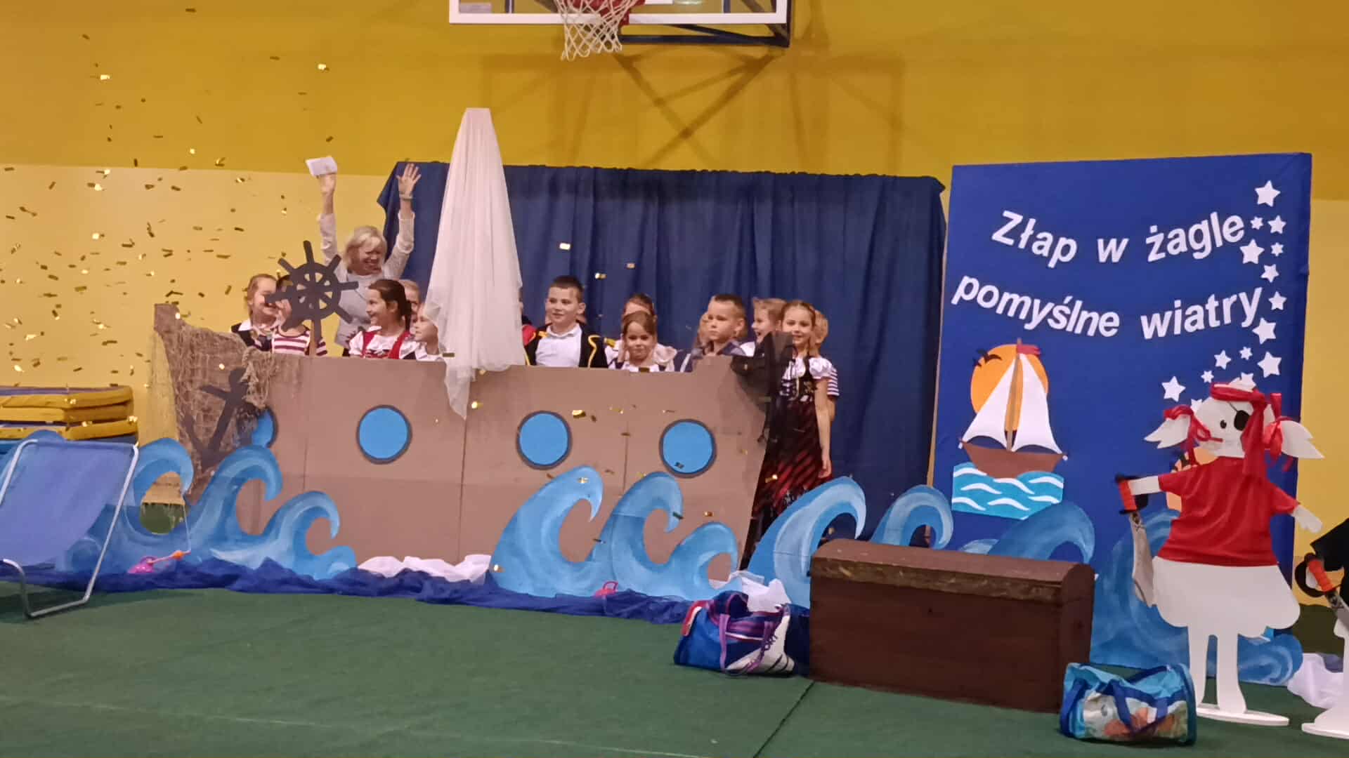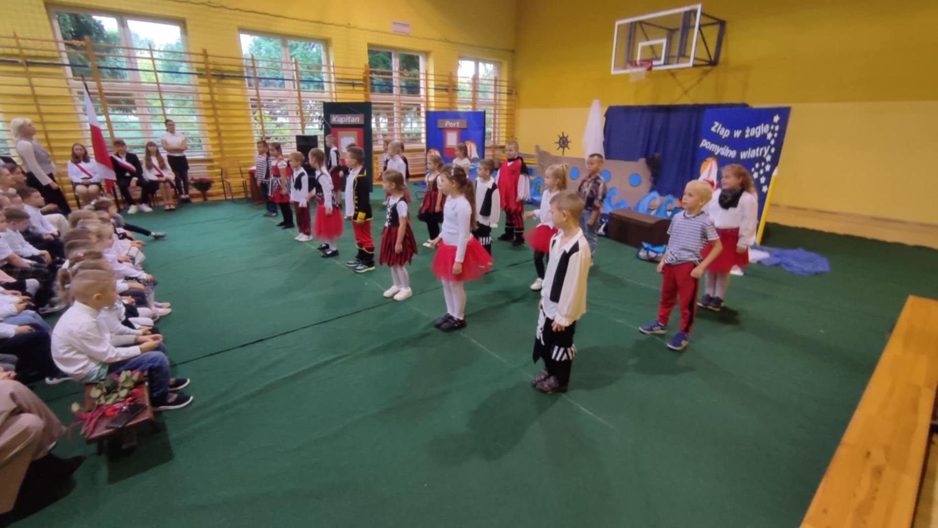 Po tej części nadszedł długo wyczekiwany moment – pasowanie na ucznia klasy pierwszej. Tegoroczna ceremonia miała wyjątkowy, bajkowo-przygodowy charakter. Pierwszoklasiści przedstawili „Piracką opowieść”, w której jako dzielna załoga wyruszyli w symboliczny ośmioletni rejs po morzach nauki. Nad ich podróżą czuwała kapitan – pani wychowawczyni Beata Klause, zapraszając dzieci do wspólnej, pełnej przygód szkolnej wyprawy.