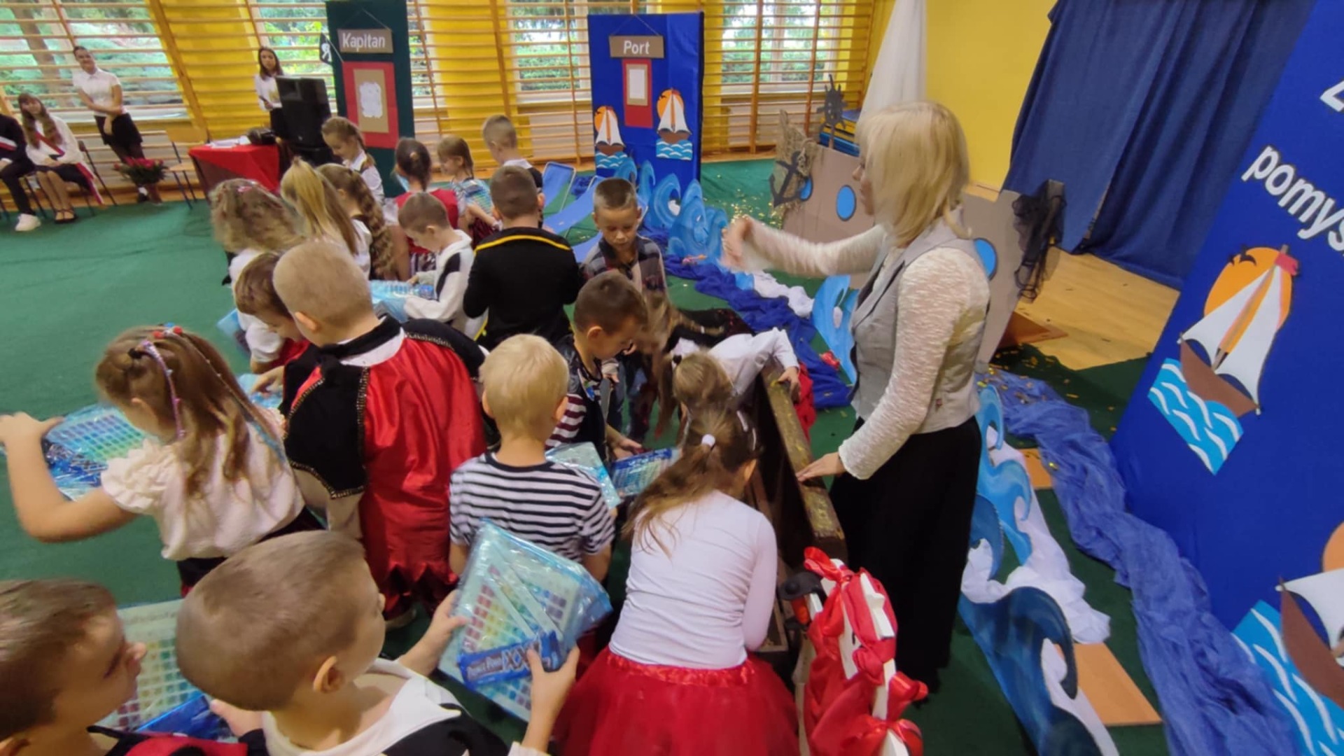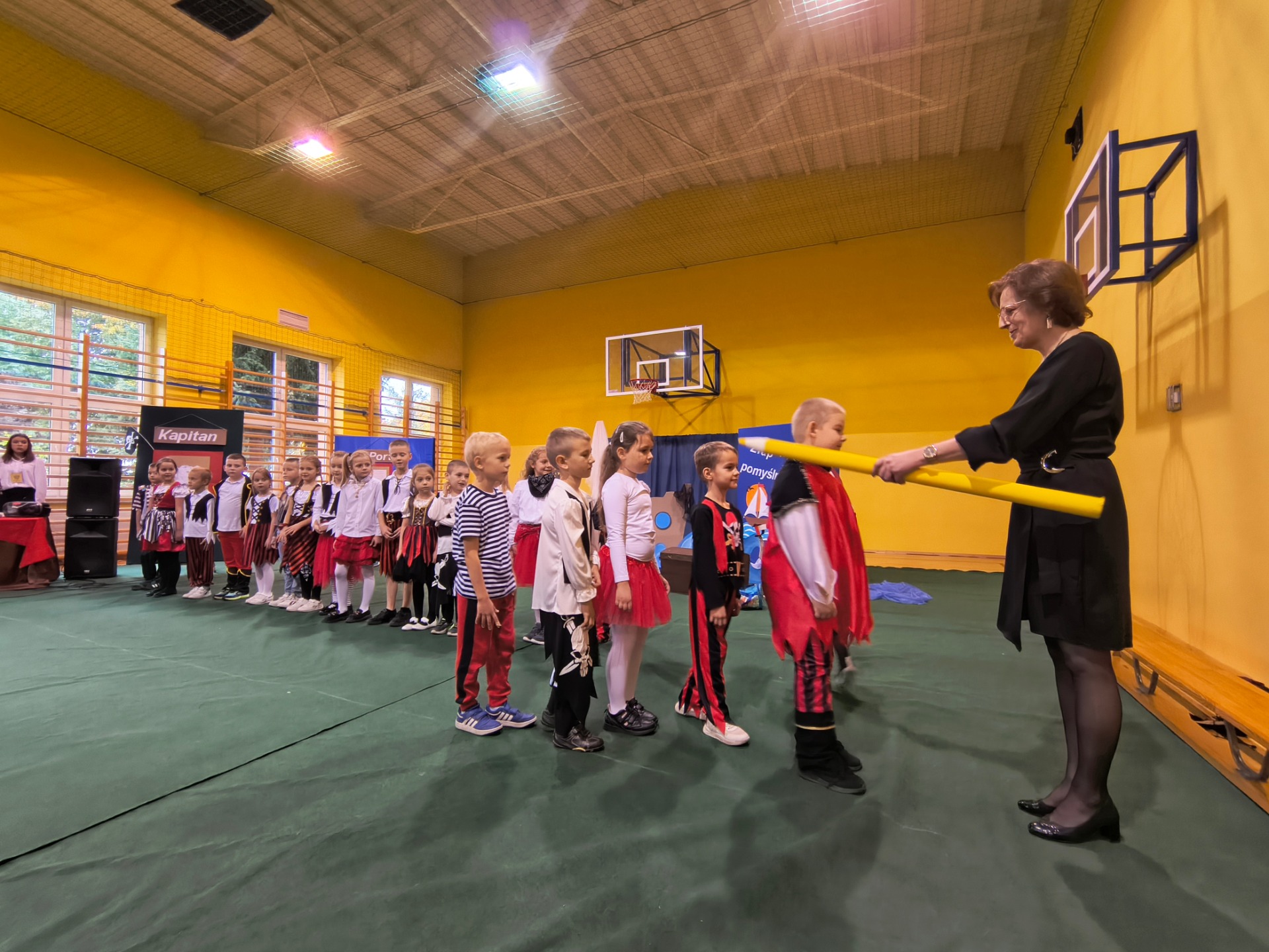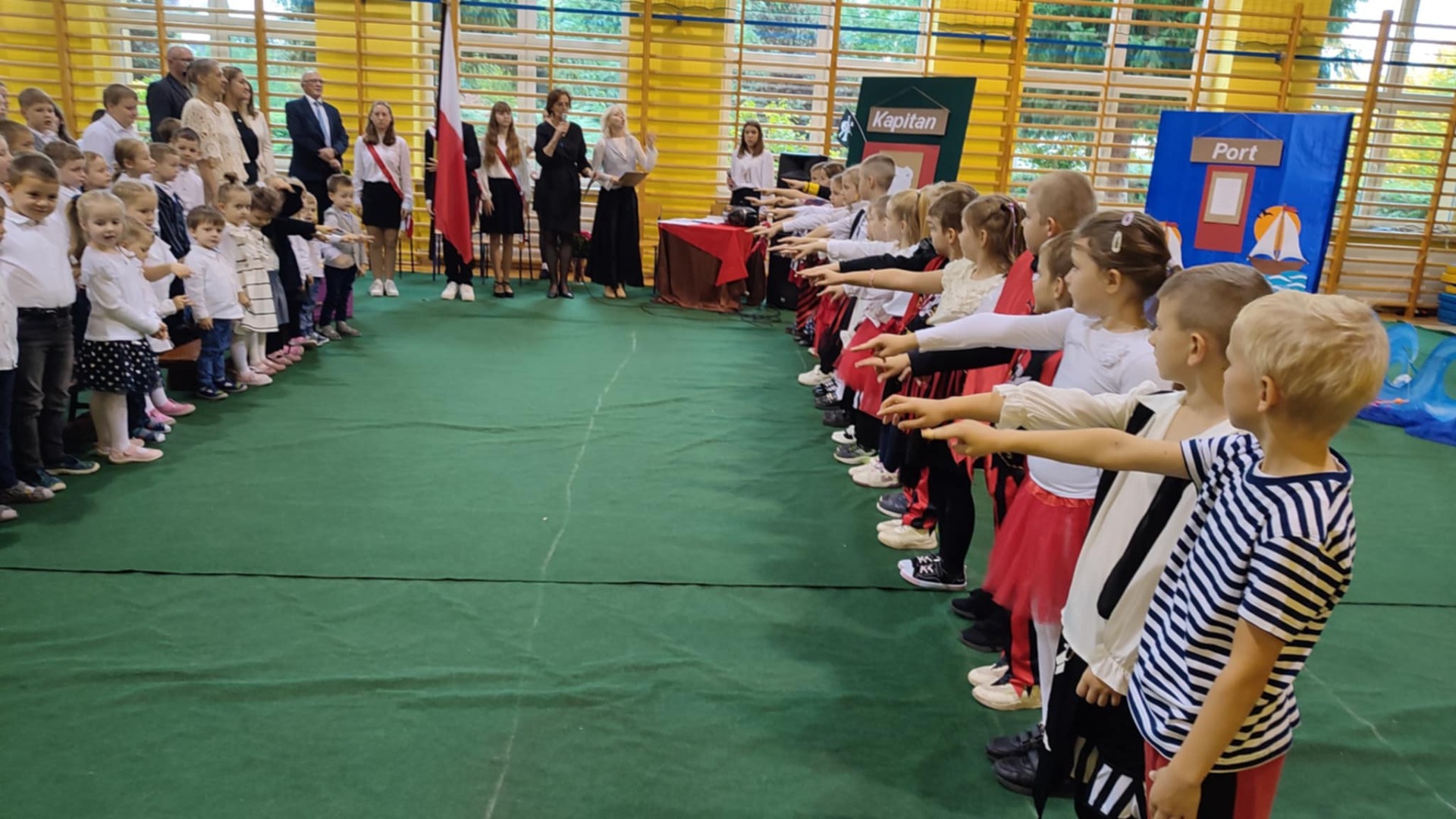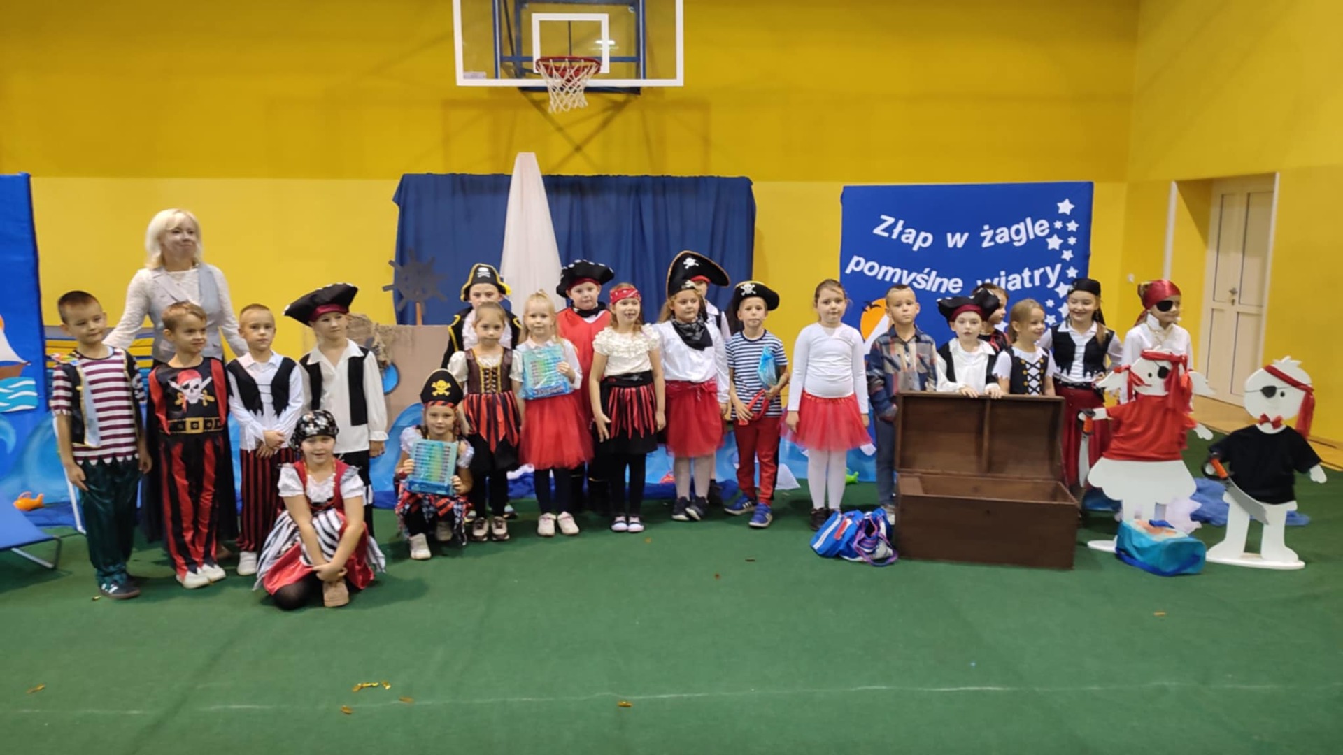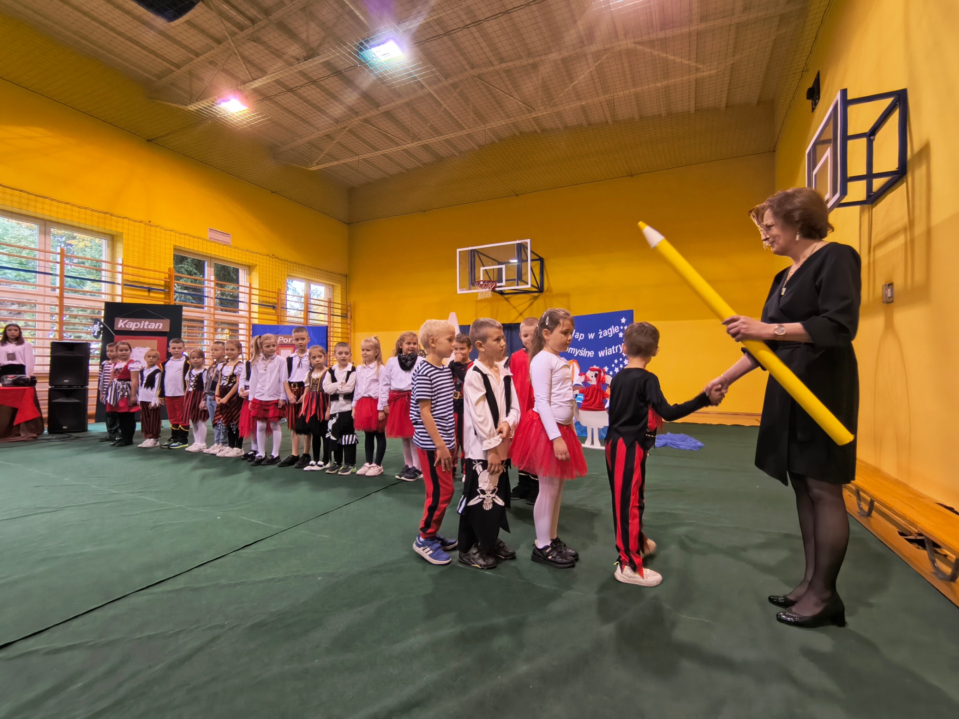 Po tej części nadszedł długo wyczekiwany moment – pasowanie na ucznia klasy pierwszej. Tegoroczna ceremonia miała wyjątkowy, bajkowo-przygodowy charakter. Pierwszoklasiści przedstawili „Piracką opowieść”, w której jako dzielna załoga wyruszyli w symboliczny ośmioletni rejs po morzach nauki. Nad ich podróżą czuwała kapitan – pani wychowawczyni Beata Klause, zapraszając dzieci do wspólnej, pełnej przygód szkolnej wyprawy.