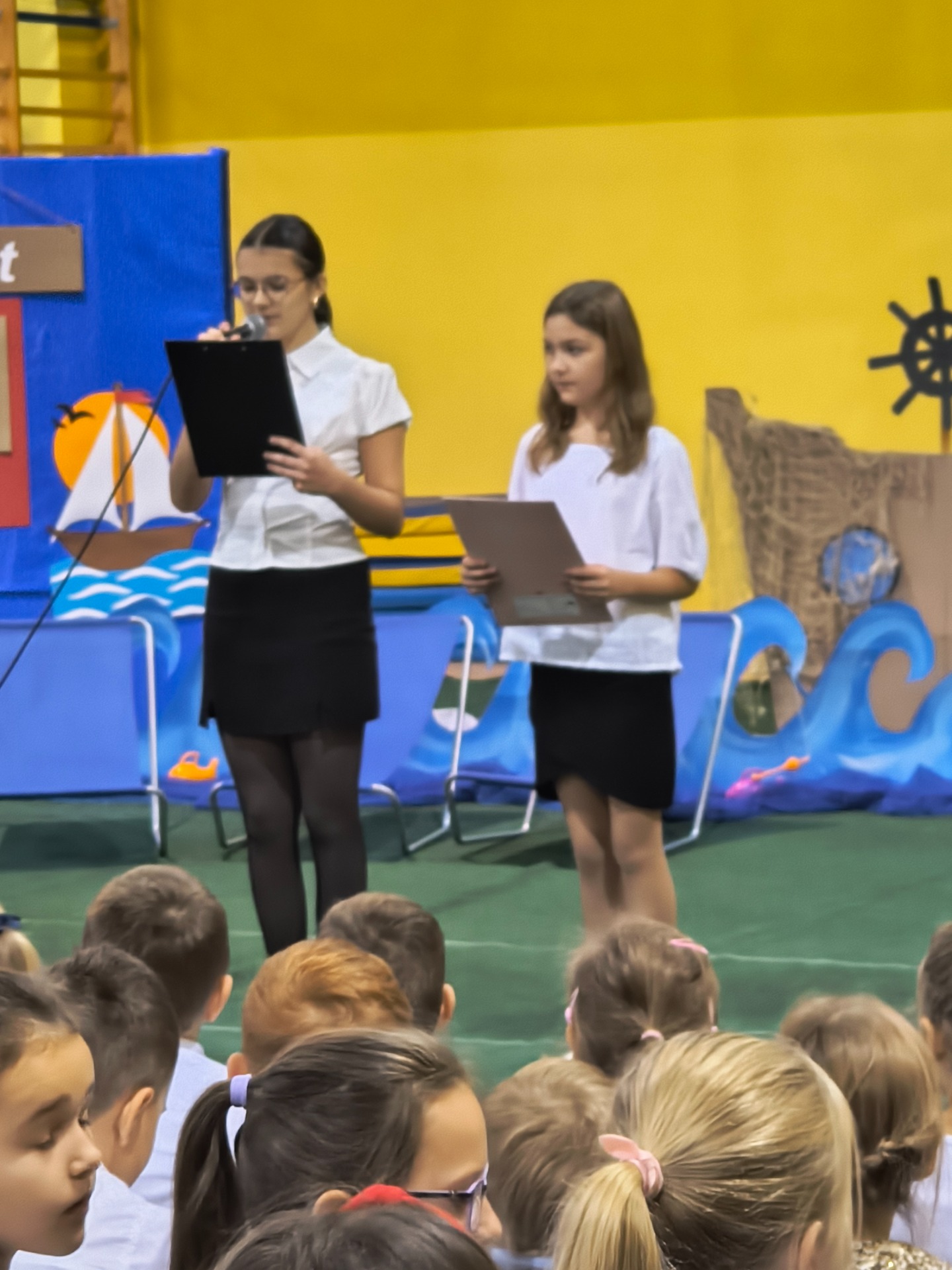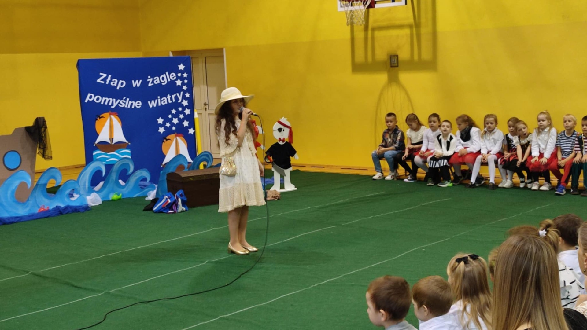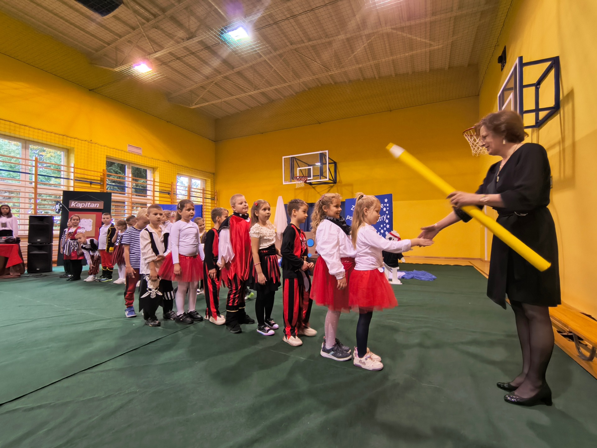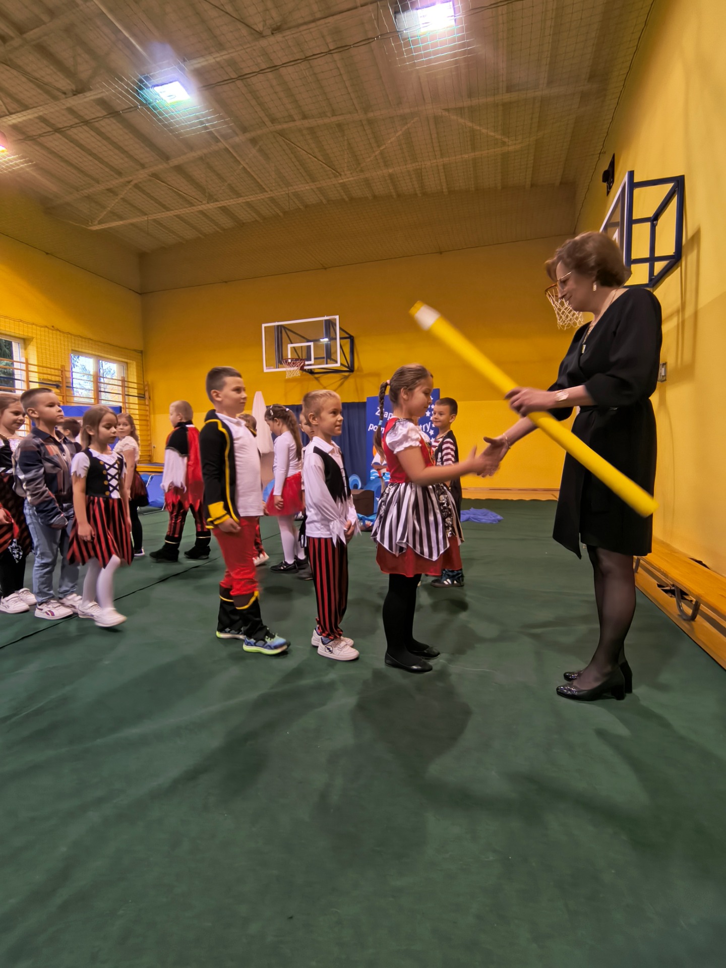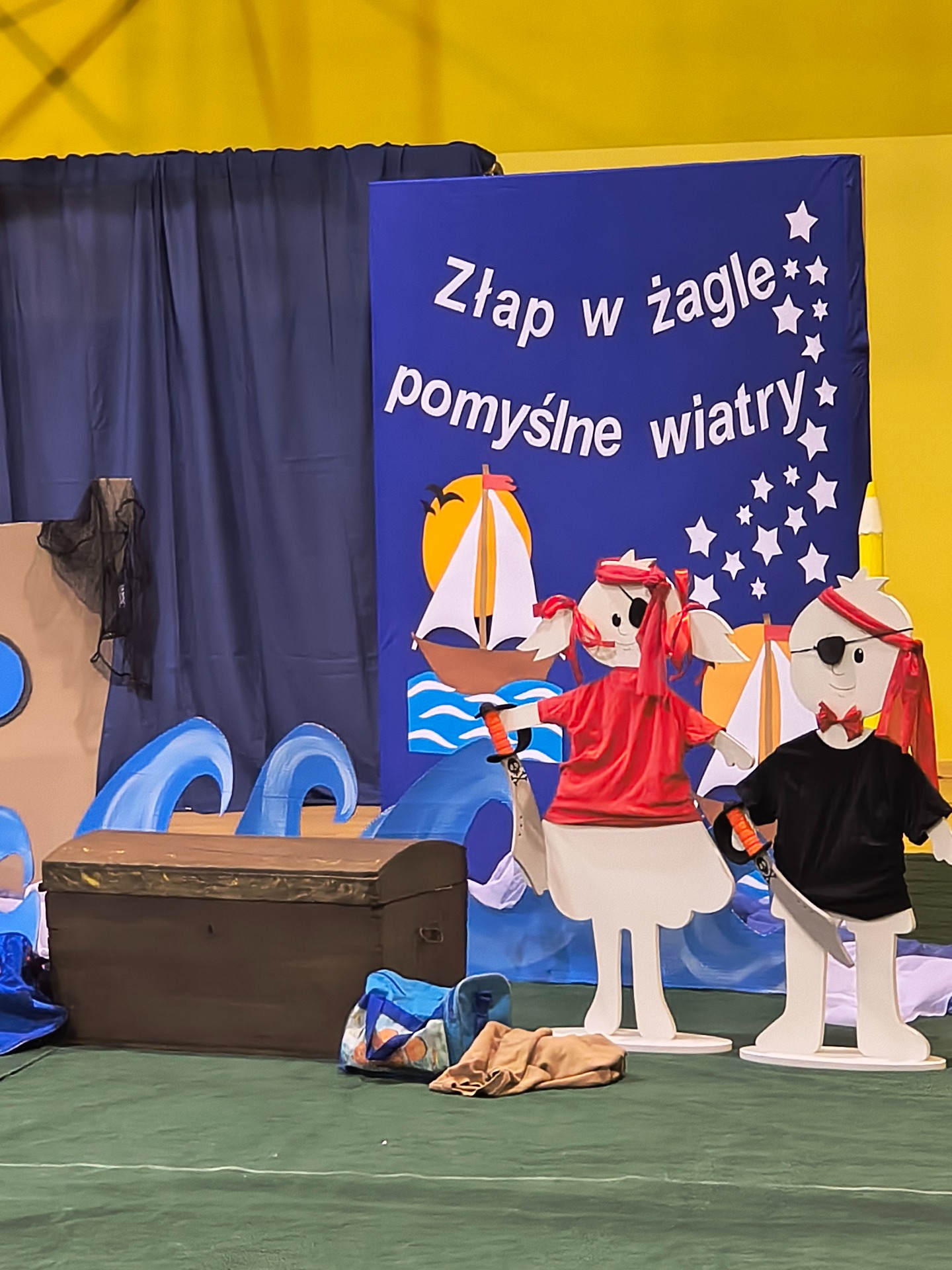 Po tej części nadszedł długo wyczekiwany moment – pasowanie na ucznia klasy pierwszej. Tegoroczna ceremonia miała wyjątkowy, bajkowo-przygodowy charakter. Pierwszoklasiści przedstawili „Piracką opowieść”, w której jako dzielna załoga wyruszyli w symboliczny ośmioletni rejs po morzach nauki. Nad ich podróżą czuwała kapitan – pani wychowawczyni Beata Klause, zapraszając dzieci do wspólnej, pełnej przygód szkolnej wyprawy.