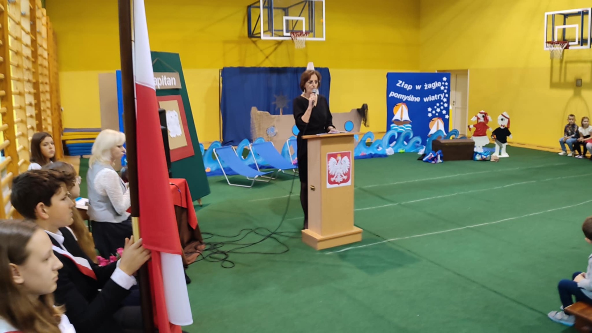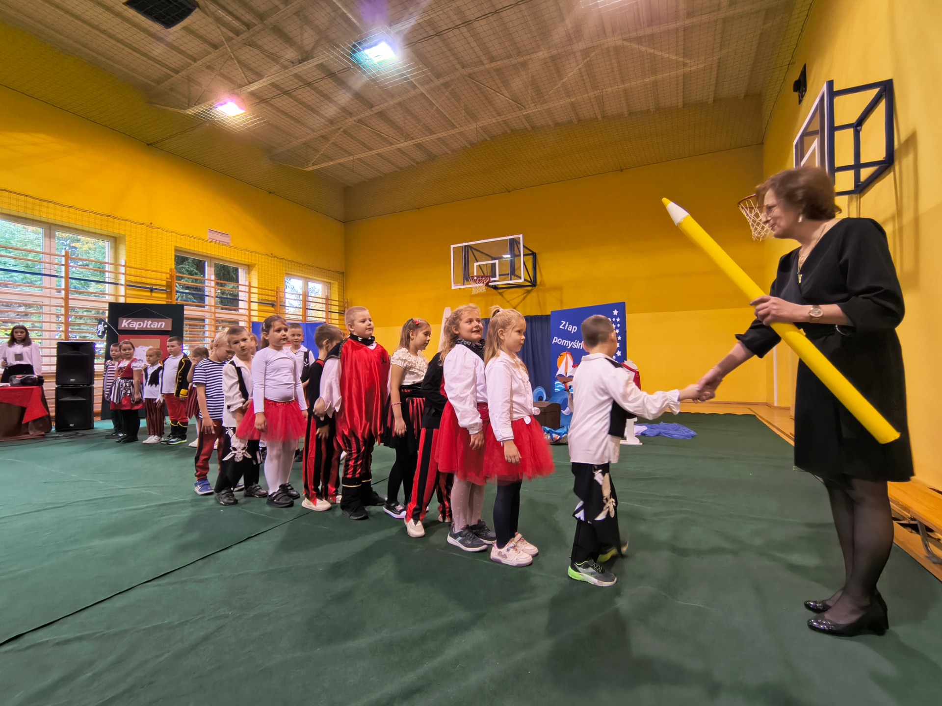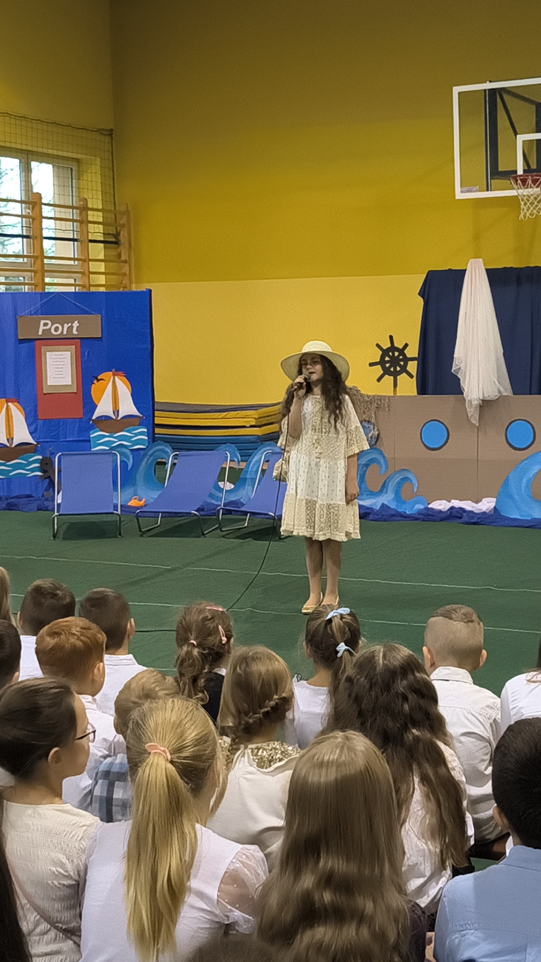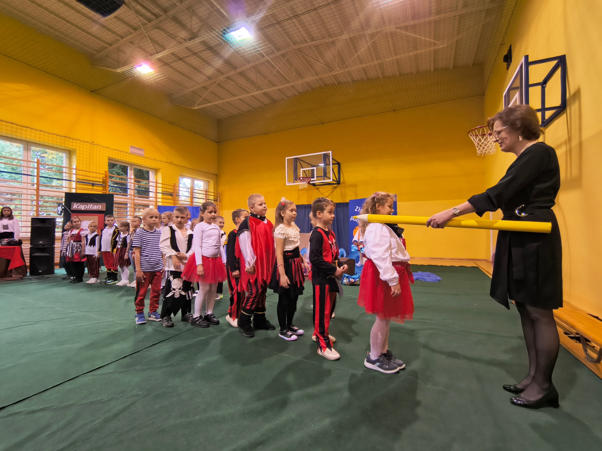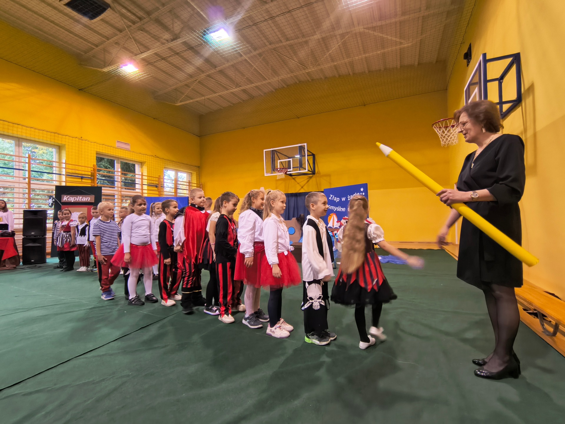 Po tej części nadszedł długo wyczekiwany moment – pasowanie na ucznia klasy pierwszej. Tegoroczna ceremonia miała wyjątkowy, bajkowo-przygodowy charakter. Pierwszoklasiści przedstawili „Piracką opowieść”, w której jako dzielna załoga wyruszyli w symboliczny ośmioletni rejs po morzach nauki. Nad ich podróżą czuwała kapitan – pani wychowawczyni Beata Klause, zapraszając dzieci do wspólnej, pełnej przygód szkolnej wyprawy.