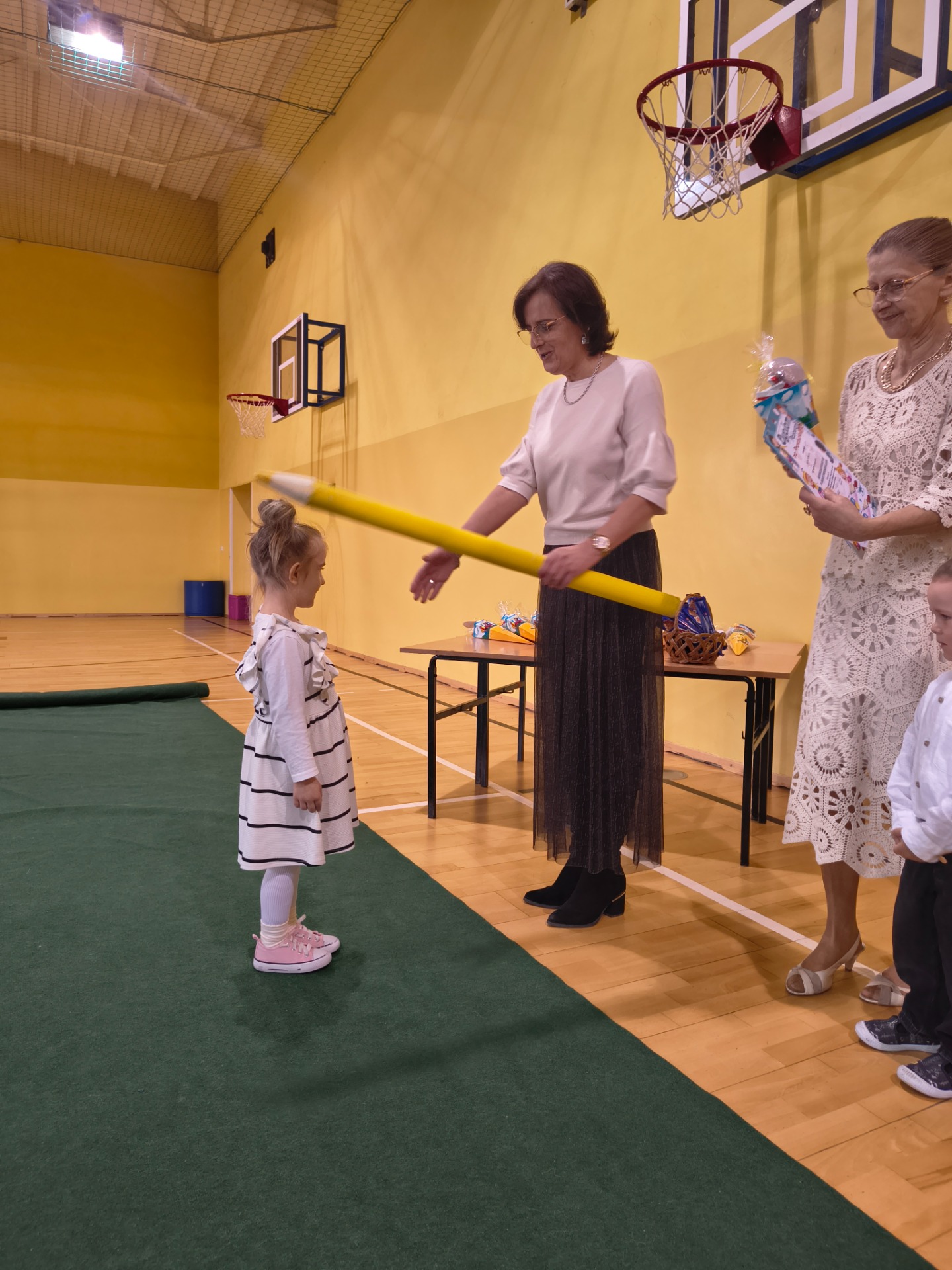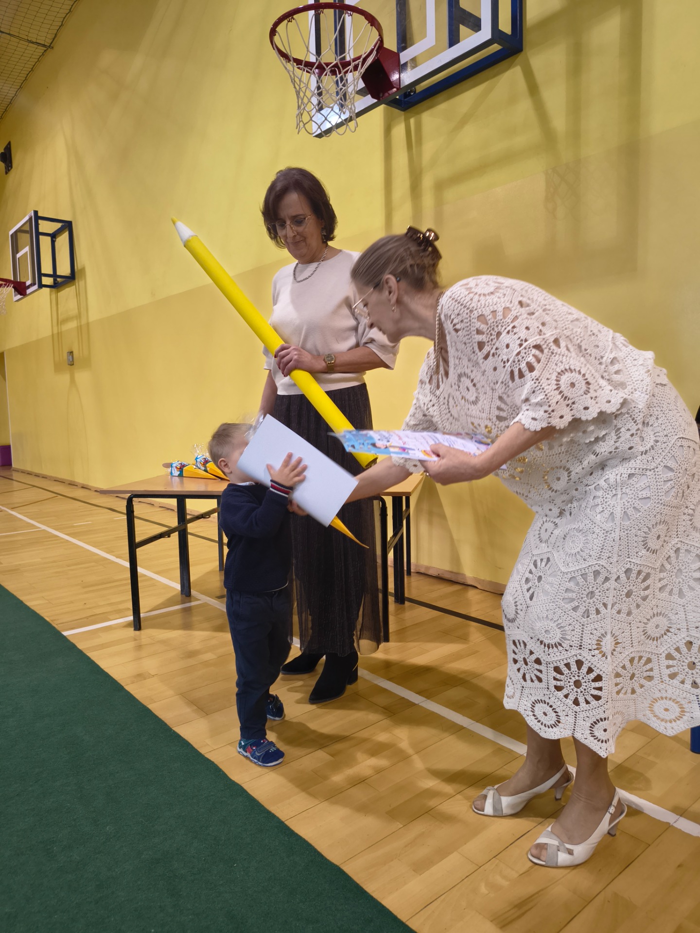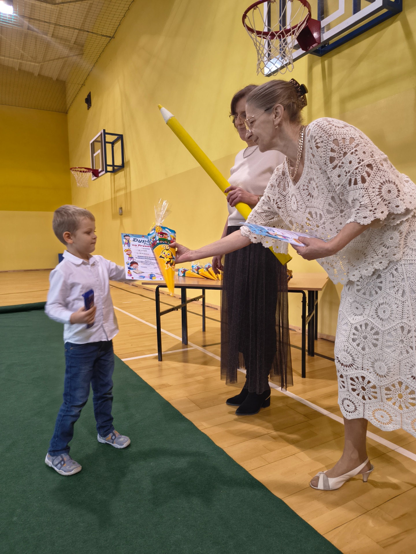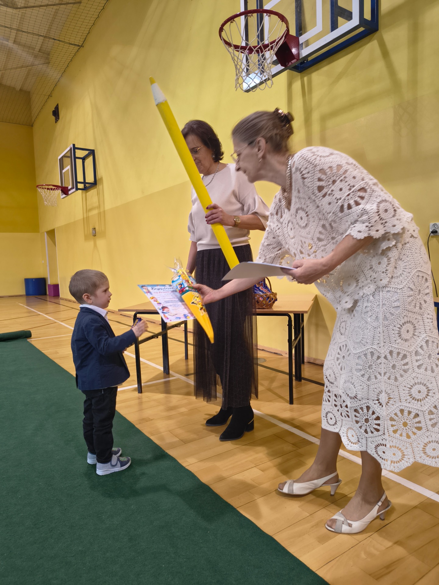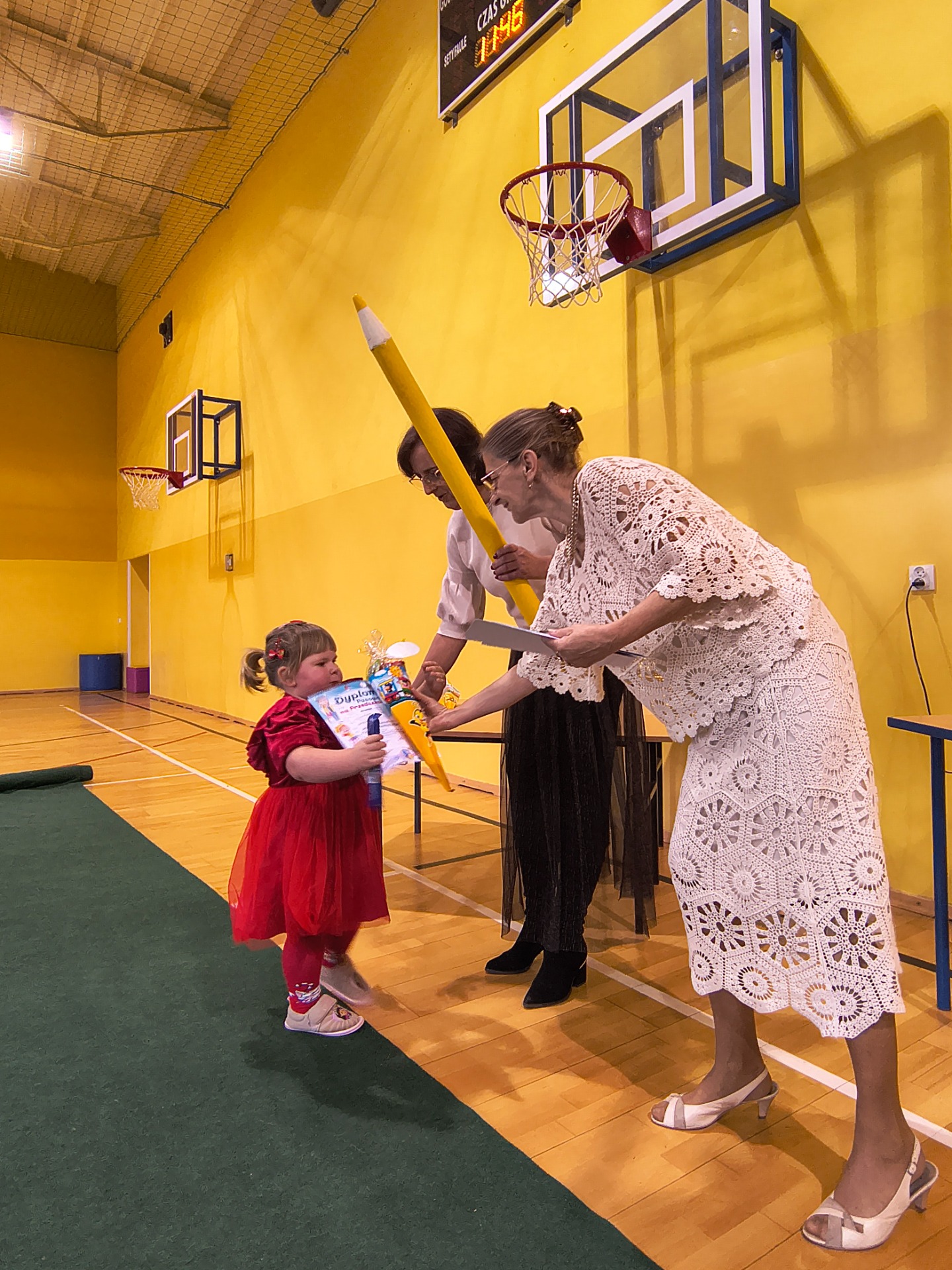 Najważniejszym momentem było pasowanie symboliczną kredką, którego dokonała Pani Dyrektor Alina Rączka oraz wręczenie dyplomów i upominków. Uroczystość zakończyła się wspólnymi zdjęciami.