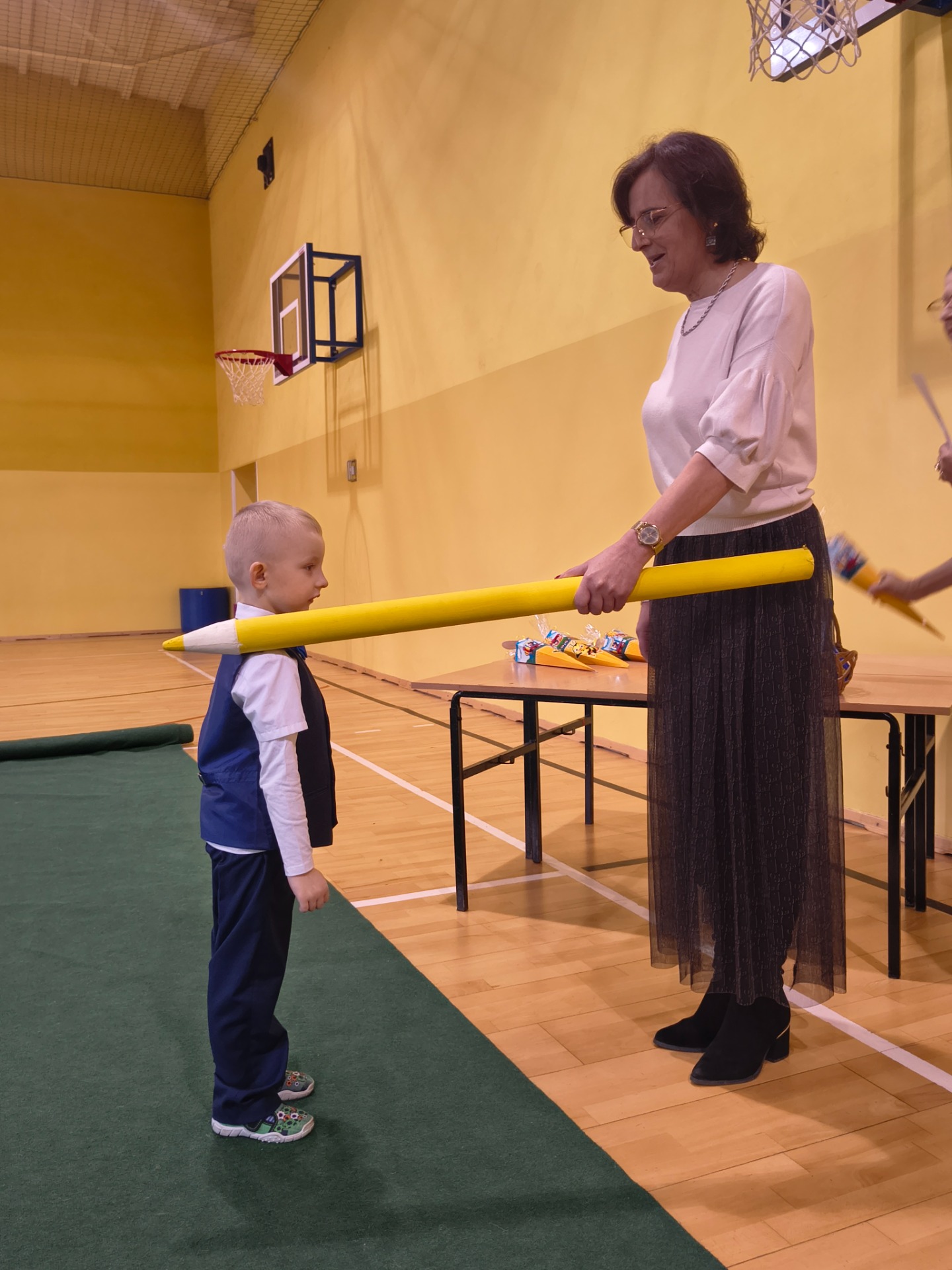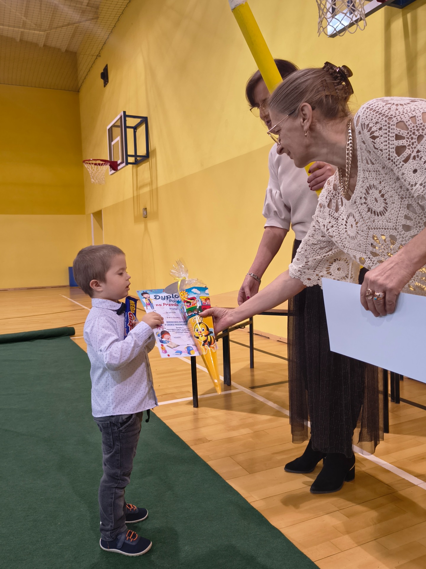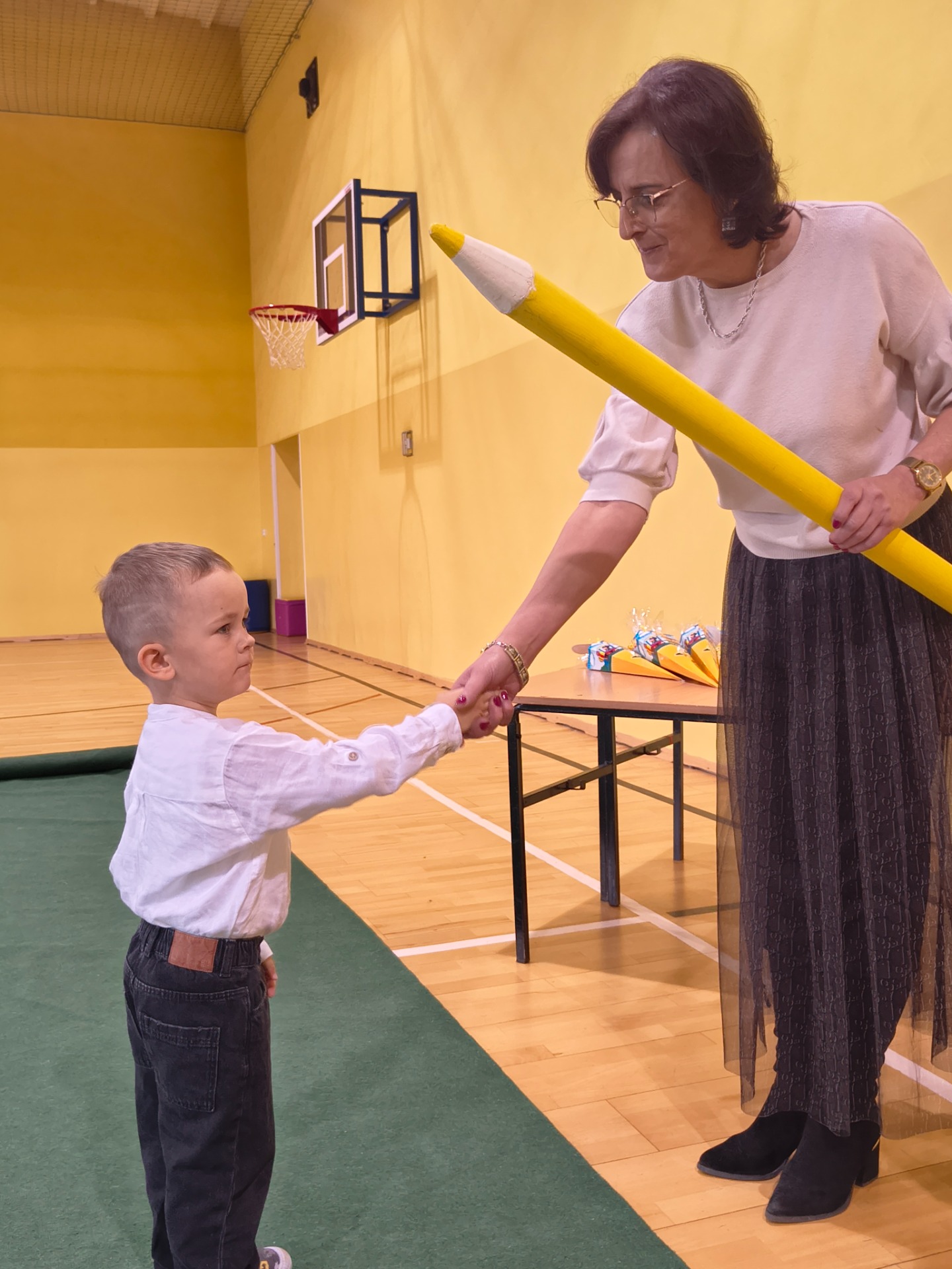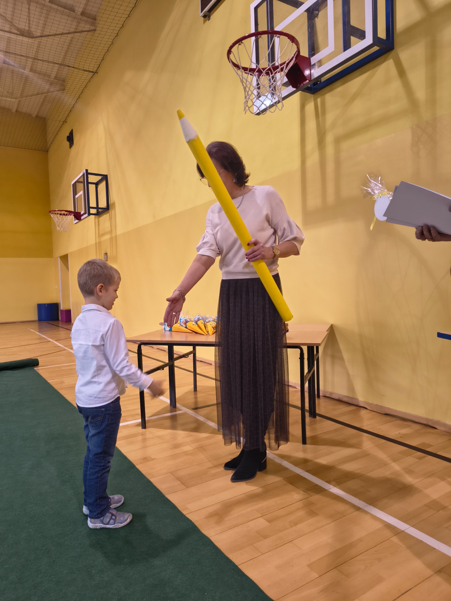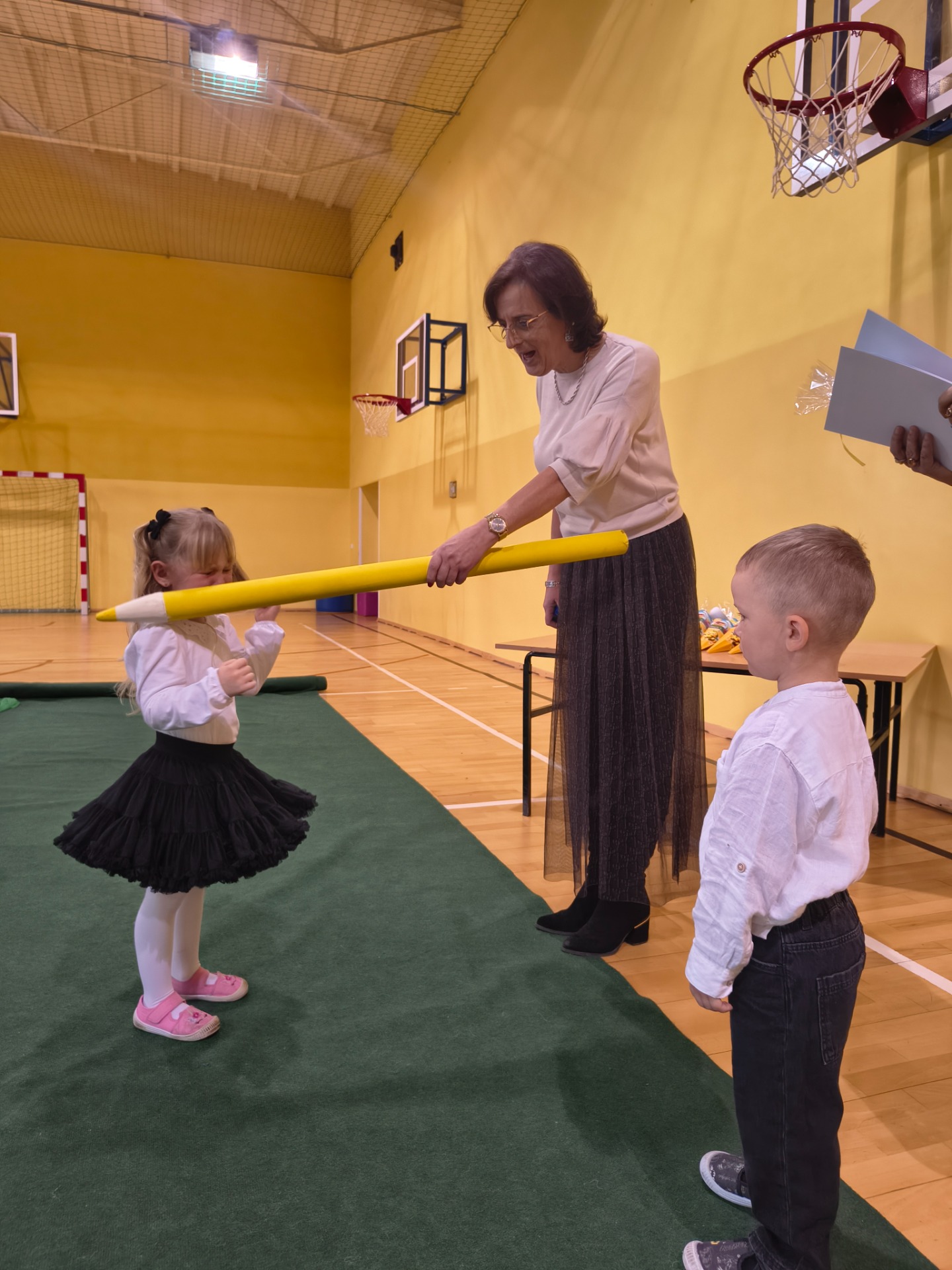 Najważniejszym momentem było pasowanie symboliczną kredką, którego dokonała Pani Dyrektor Alina Rączka oraz wręczenie dyplomów i upominków. Uroczystość zakończyła się wspólnymi zdjęciami.