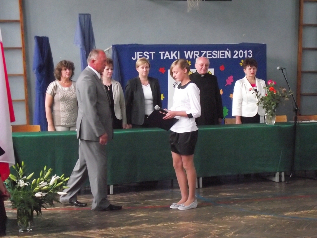 Dziś - 2 września. Po dwóch miesiącach wspaniałych wakacji uczniowie wracają do szkolnych ław, na nowo zawitali w mury ukochanej szkoły. Chociaż ciężko będzie po wakacjach wrócić w rytm codzinnej nauki i pracy, każde dziecko z radością przywitało dziś swoją wychowawczynię oraz ulubionych kolegów i koleżanki. Uroczystość inauguracji roku szkolnego 2013/2014 rozpoczęła się mszą św w kościele parafialnym w Mokronosie, następnie dyrekcja, grono pedagogiczne, rada rodziców, rodzice, wszyscy uczniowie oraz przedszkolaki wzięli udział w uroczystej akademii. Pan Dyrektor Janusz Baszczyński serdecznie przywitał wszystkich zebranych, przedstawił kalendarz roku szkolnego, przypomniał o bezwzględnym przestrzeganiu bezpieczyństwa w drodze do i ze szkoły oraz złożył życzenia na nadchodzący rok szkolny, aby był owocny w jak najlepsze oceny oraz aby przyniósł wiele sukcesów. Następnie serdecznie życzenia na nadchodzący rok szkolny złożyła także przewodnicząca Rady Rodziców Pani Beata Wyduba. Uroczystość zakończył występ artystyczny uczniów, którzy swoimi wierszami i piosenkami oficjalnie pożegnali wakacje i powitali szkołę. W duchu patryiotyzmu uczcili także rocznicę wybuchu II wojny światowej. Po zakończeniu akademii wszyscy udali się do swoich sal lekcyjnych na spotkanie z wychowawczynią oraz swoimi kolegami i koleżankami.
