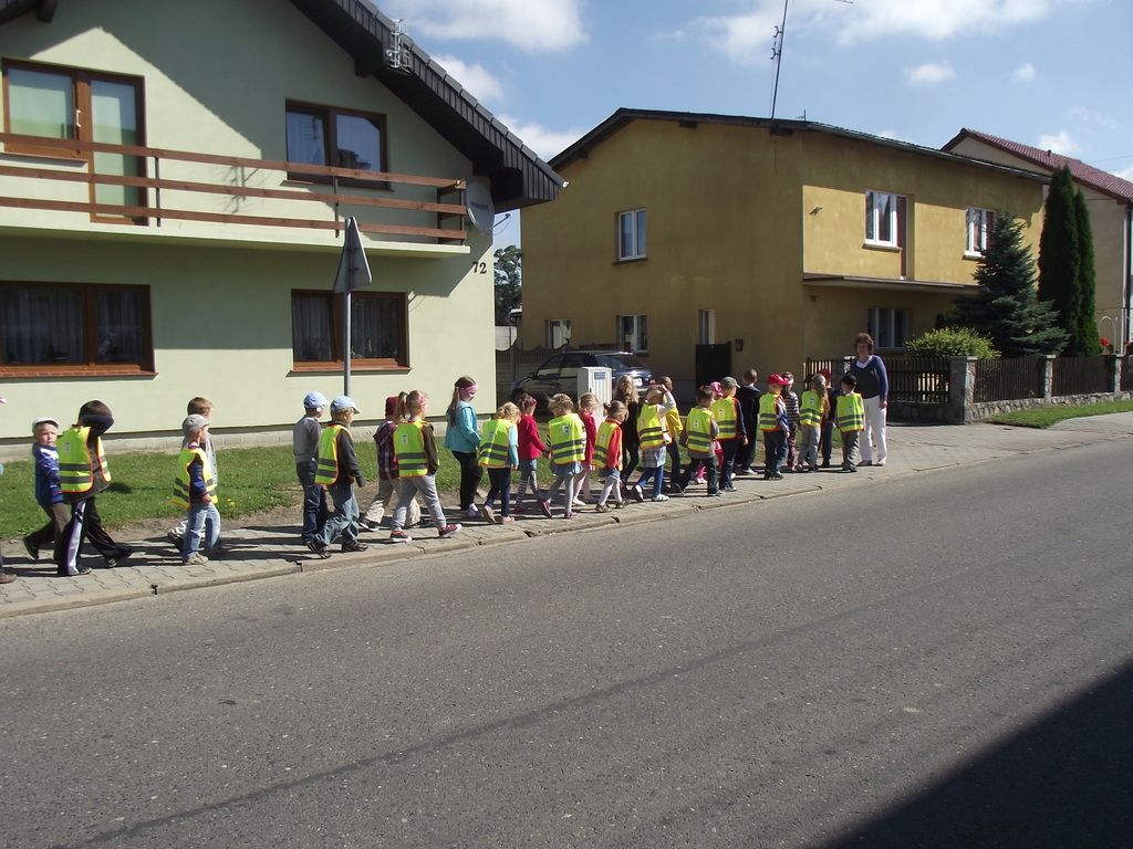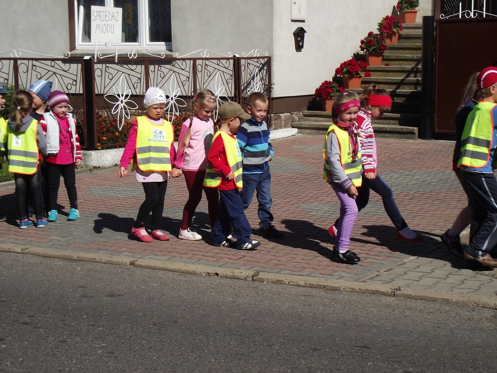Mokronowskie przedszkolaki wraz z wychowawczyniami korzystają w pełni z pogodnych dni. Spacery na świeżym powietrzu są doskonałą okazją do utrwalenia zasad bezpieczeństwa w ruchu drogowym w pobliżu szkoły. Dzieci uczą się jak właściwie i bezpiecznie przechodzić przez jednię i poruszać się po chodnikach przeznaczonych dla pieszych. Przedszkolaki maszerowały wesoło, ubrane w kamizelki odblaskowe ufundowane w 2010 r. dla przedszkola przez Starostwo Powiatowe w Krotoszynie oraz Stowarzyszenie "Wiara Lecha".