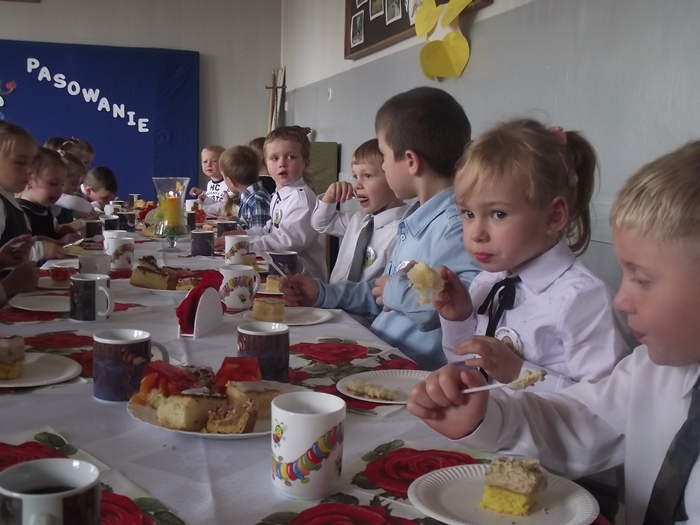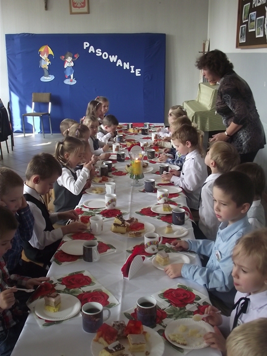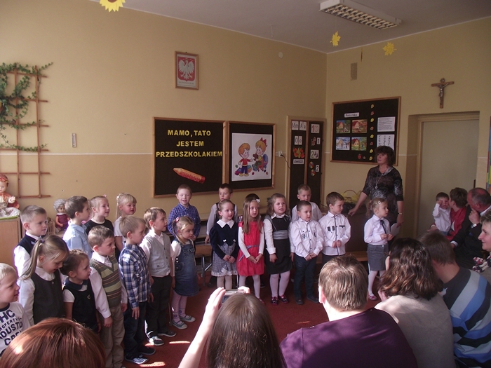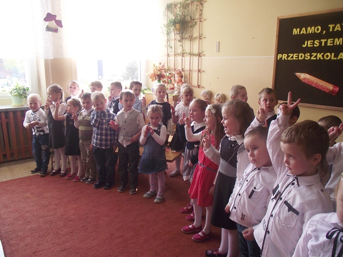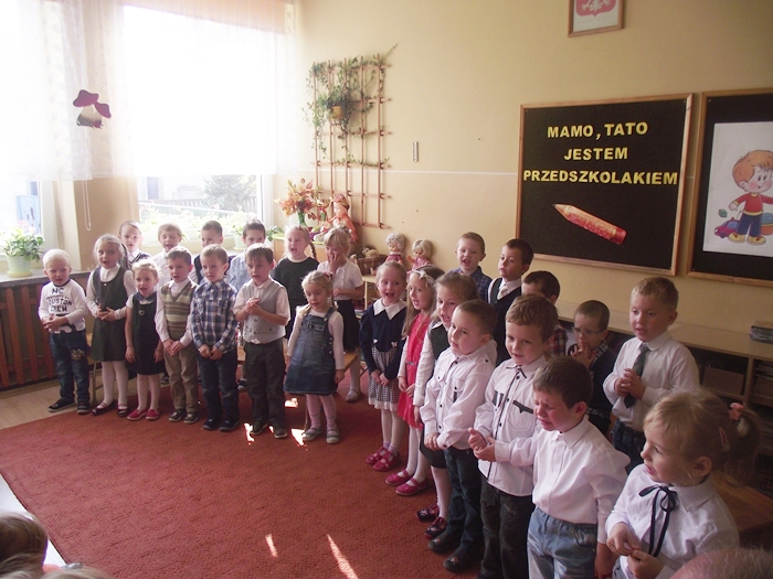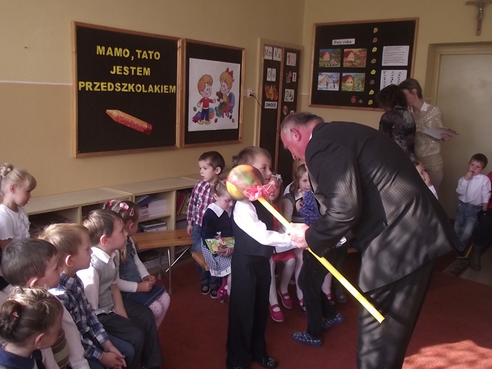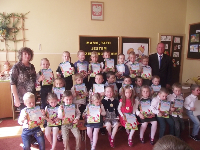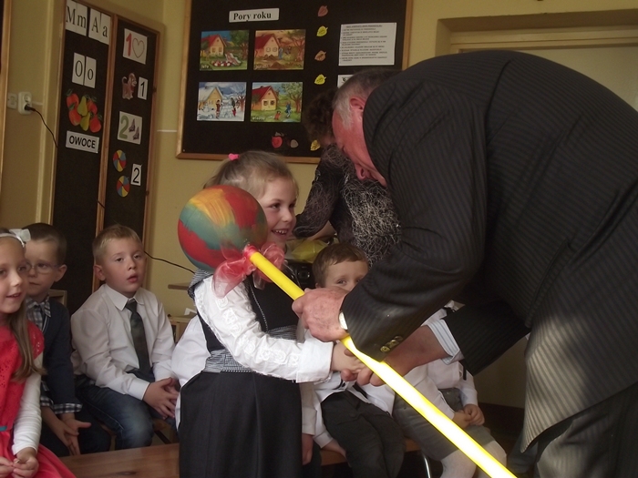 Dziś wielki dzień dla każdego przedszkolaka. 26 dzieci z oddziału przedszkolnego w Mokronosie zostało pasowanych na przedszkolaka albo starszaka i tym samym oficjalnie zostali przyjęci do braci przedszkolnej. W tej niezwykłej uroczystości przedszkolakom towarzyszyli ukochani rodzice, wychowawczyni pani Dorota Staniewska oraz dyrektor szkoły pan Janusz Baszczyński. W pięknie udekorowanej sali i w odświętnych strojach dzieci zaprazentowały swoje umiejętności artystyczne - śpiewały wesołe piosenki i recytowały wierszyki. Zapewniały, że doskonale wiedzą jak należy zachowywać się w przedszkolu i że uwielbiają codziennie do niego przychodzić. Na koniec części artystycznej uroczyście złożyły akt ślubowania i poprosiły pana dyrektora o pasowanie. Pan dyrektor symbolicznym, wielkim lizakiem pasował każde dziecko na przedszkolaka lub starszaka. Była to emocjonująca chwila zarówno dla przedszkolaków jak i ich rodziców. Dzieci otrzymały pamiątkowe dyplomy, plakietki oraz słodkie upominki. Uroczystość zakończył wspólny, słodki poczęstunek przygotowany przez rodziców.