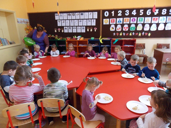 W piątek w przedszkolu we Wrotkowie dzieci obchodziły Dzień Witaminki. Z tej okazji wychowawczyni przygotowała teatrzyk kukiełkowy, w którym dzieci obejrzały inscenizację wiersza J. Brzechwy "Na straganie" oraz "Pani Witaminka". Następnie odbyły się zajęcia plastyczne, na których dzieci przygotowały postać Pani Witaminki oraz przyklejały emblematy warzyw na szablon garnka, w którym powstała zupa warzywna. Na zakończenie zajęć przedszkolaki wspólnie przygotowały pyszną sałatkę jarzynową. To był dzień pełen niezapomnianych wrażeń.