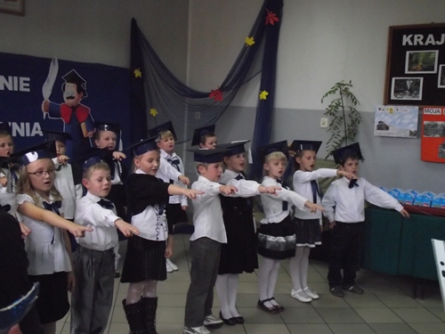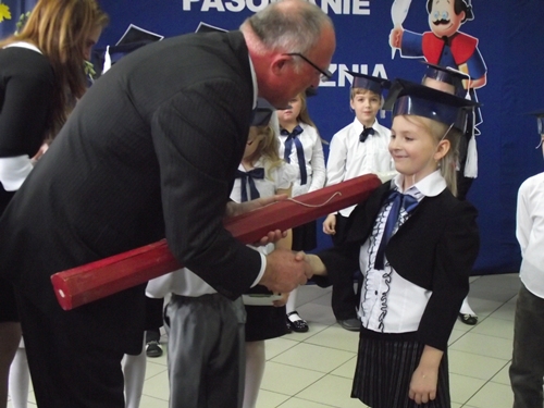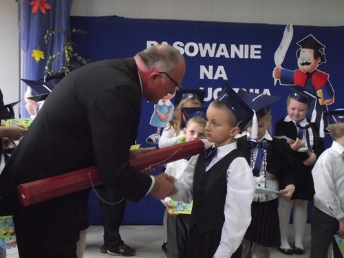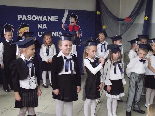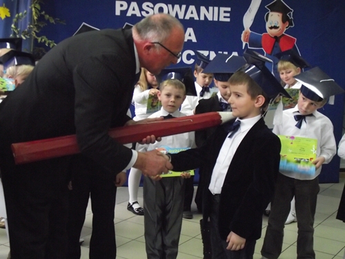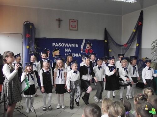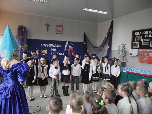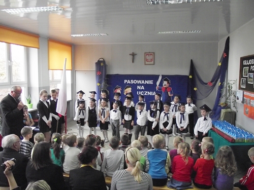 29 października 2013 r. w naszej szkole, podczas uroczystej akademii 19 dzieci z klasy I zostało pasowanych na ucznia. Najpierw dzieci przedstawiły swój program artystyczny, a w nim zapewniały, że chcą się uczyć i pracować, a nie leniuchować. Nie zabrakło pięknie wyrecytowanych wierszy i wesołych piosenek. Następnie w obecności pana dyrektora, rodziców, wychowawczyni, księdza proboszcza oraz kolegów i koleżanek z oddziału 6 i 5-latków, pierwszaki złożyły uroczyste ślubowanie. Przyrzekali, że będą się pilnie uczyć, dobrze zachowywać, dbać o szkołę i godnie ją reprezentować. Pan dyrektor Janusz Baszczyński symboliczną kredką oficjalnie pasował każdego pierwszoklasistę na ucznia Szkoły Podstawowej w Mokronosie. Uczniowie przyjęli życzenia, otrzymali pamiątkowe dyplomy oraz kuferki z niespodzianką. Uroczystość zakończyła się wspólnym, słodkim poczęstnkiem przygotowanym przez rodziców.