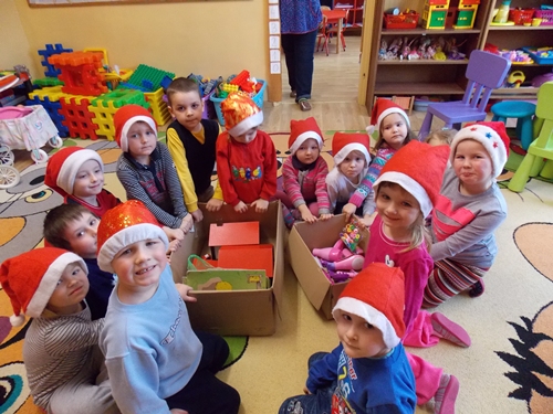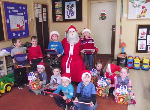 W piątkowy poranek dzieci z Wrotkowa niecierpliwie czekały na Świętego Mikołaja, wspólnie śpiewali piosenki i byli bardzo grzeczni, ponieważ dobrze wiedzą, że Mikołaj przynosi podarki tylko grzecznym przedszkolakom. Radość była ogromna kiedy po śniadanku okazało się, że w butach czekają na dzieci słodkie niespodzianki i dwa ogromne kartony, w których zapakowane były nowe zabawki do przedszkola.