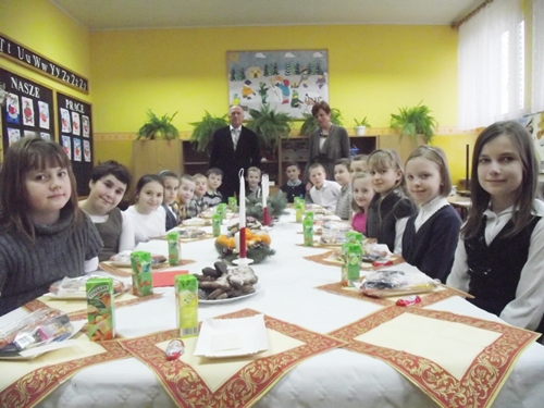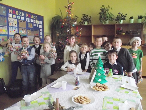 20 grudnia br. już od rana w murach szkoły panował świąteczny klimat. Uczniowie przybyli do szkoły w odświętnych strojach, aby ostatniego dnia przed świąteczną przerwą od zajęć szkolnych, spotkać się z kolegami i koleżankami przy choince, świątecznym stole i podzielić się z nimi opłatkiem. Gwiazdkowe spotkania rozpoczęły się od wspólnego uczestnictwa w montażu słowno - muzycznym "To właśnie tego wieczoru..." związanym z nadchodzącymi Świętami Bożego Narodzenia. Występ ten przygotował chór szkolny pod przewodnictwem pani Moniki Kieliby i wystąpił w Kościele pw. Wniebowzięcia NMP w Mokronosie. Następnie wszyscy uczniowie udali się do swoich klas, aby przygotować świąteczny stół, wspólnie przy nim zasiąść i połamać się opłatkiem. Były także świąteczne paczki, pełne słodkości oraz wspólne śpiewanie kolęd. Nadszedł czas przerwy świątecznej, do szkoły uczniowie wrócą dopiero w nowym roku - 7 stycznia.