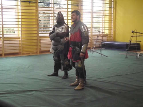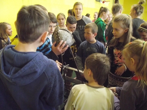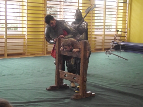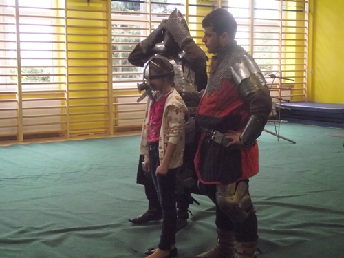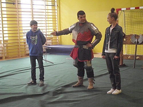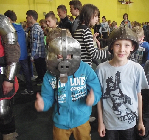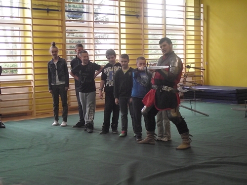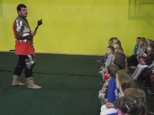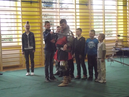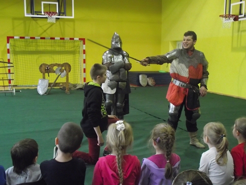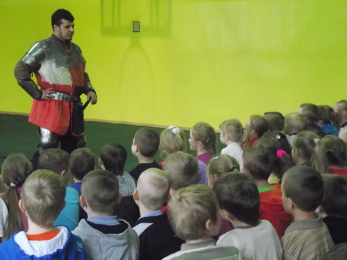 28 kwietnia br. w sali gminastycznej naszej szkoły Grupa Artystyczna REKONSTRUKTO z Lublina zaprezentowała uczniom naszej szkoły przepiękny pokaz pt. "Życie i kultura w średniowieczu". Pokaz był żywą lekcją historii, prezenatcją obyczajów i kultury epoki średniowiecza. Podczas barwnych opowieści prowadzącego dzieci mogły zobaczyć i dotknąć elementów zbroi rycerskiej, pradawnej broni i rekwizytów. Artyści zapraszali dzieci do wspólnej zabawy. Przedstawienie było bardzo ciekawe i pouczające, przeniosło nas wszystkich do czasów znanych nam z lekcji historii.