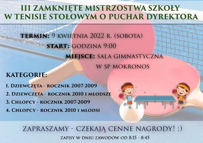 III ZAMKNIĘTE MISTRZOSTWA SZKOŁY W TENISIE...